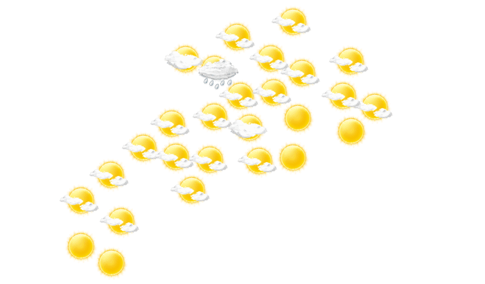 In Guangzhou wird morgens die Sonne von einzelnen Wolken verdeckt bei Temperaturen von 25°C. Im weiteren Verlauf des Tages sind am Nachmittag und am Abend Teile des Himmels mit Wolken bedeckt, die Sonne ist aber zwischendurch sichtbar bei Werten von 27 bis zu 34°C. Nachts ist der Himmel bedeckt bei Tiefsttemperaturen von 25°C.
