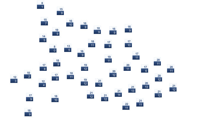 | 2 | 4 | 11 | 20 | 26 | 30 | 31 | 30 | 26 | 19 | 10 | 3 |