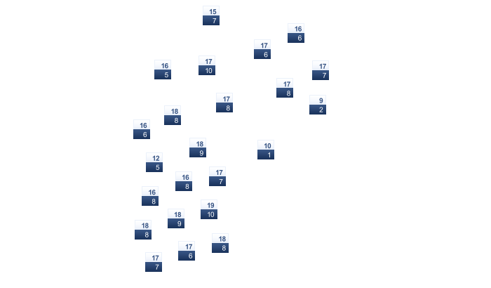 | 2 | 4 | 11 | 20 | 26 | 30 | 31 | 30 | 26 | 19 | 10 | 3 |