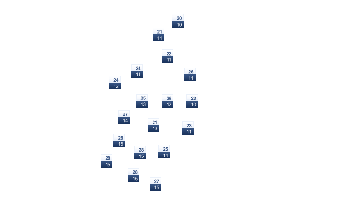 | 2 | 4 | 11 | 20 | 26 | 30 | 31 | 30 | 26 | 19 | 10 | 3 |