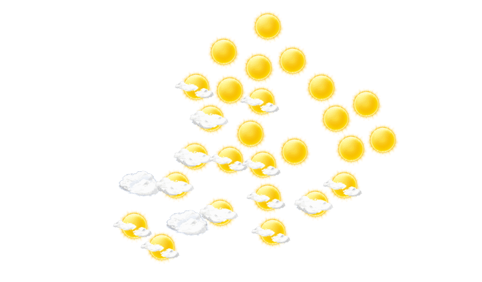In Korla wird tagsüber die Sonne von einzelnen Wolken verdeckt bei Temperaturen von 16 bis 25°C. In der Nacht bilden sich vereinzelt Wolken bei Werten von 17°C.