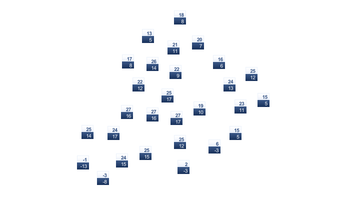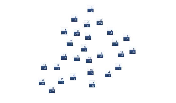 | -9 | -7 | -1 | 7 | 13 | 18 | 22 | 20 | 14 | 7 | 0 | -7 |
