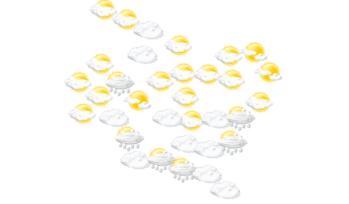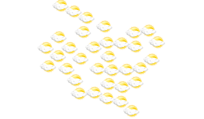 In Roncha gibt es am Morgen strahlenden Sonnenschein bei Werten von 18°C. Im weiteren Tagesverlauf wird die Sonne von einzelnen Wolken verdeckt bei Höchstwerten von 29°C. Am Abend ist es in Roncha vielfach wolkig und die Temperaturen liegen zwischen 20 und 21 Grad. Nachts ist es klar bei Werten von 19°C.