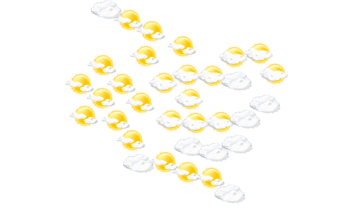 In Roncha strahlt am Morgen die Sonne bei Temperaturen von 20°C. Später gibt es Regen und die Höchstwerte liegen bei 28°C. Am Abend ist es in Roncha überwiegend dicht bewölkt und die Temperaturen liegen zwischen 20 und 21 Grad. Nachts ist es überwiegend klar mit vereinzelten Wolken und die Werte gehen auf 19°C zurück.