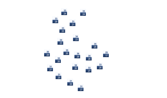 | 20 | 20 | 21 | 22 | 22 | 22 | 22 | 22 | 22 | 22 | 22 | 21 |