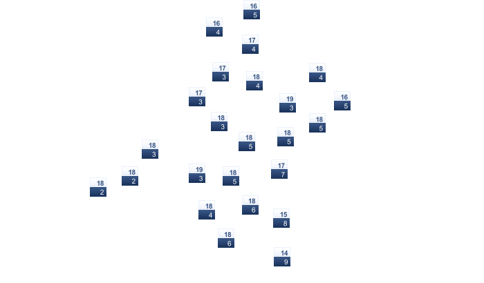 | 2 | 2 | 5 | 10 | 15 | 19 | 20 | 20 | 16 | 12 | 7 | 3 |