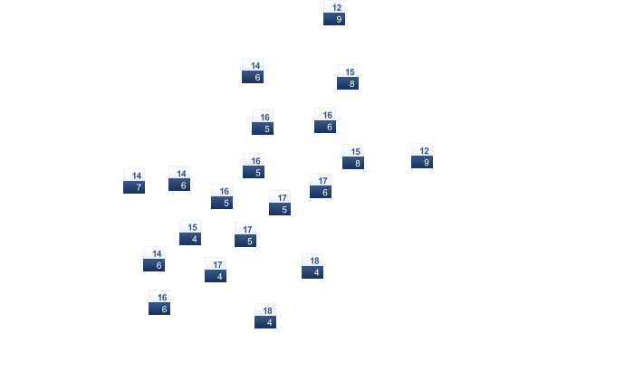 | 2 | 2 | 5 | 10 | 15 | 19 | 20 | 20 | 16 | 12 | 7 | 3 |