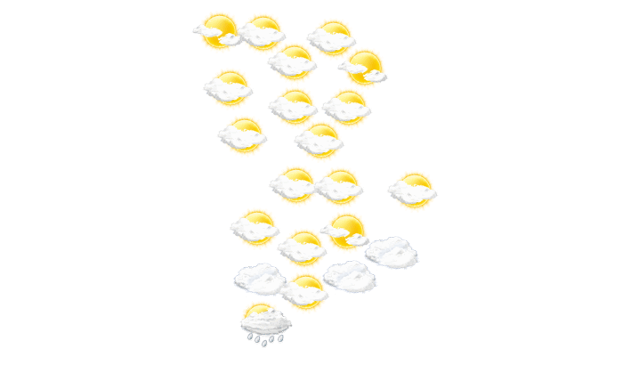 In Mbuji-Mayi ist am Morgen der Himmel bedeckt, die Sonne ist nicht zu sehen bei Werten von 21°C. Im weiteren Verlauf des Tages sind am Nachmittag und am Abend Teile des Himmels mit Wolken bedeckt, die Sonne ist aber zwischendurch sichtbar bei Temperaturen von 23 bis 30°C. In der Nacht ziehen Wolkenfelder durch bei Werten von 21°C.