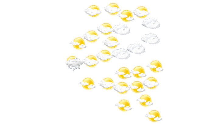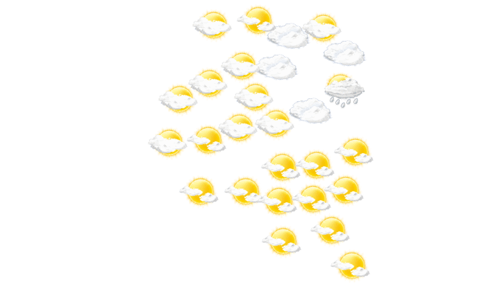 In Butembo überwiegt am Morgen dichte Bewölkung aber es bleibt trocken bei Werten von 15°C. Im weiteren Tagesverlauf sind anhaltende Schauer zu erwarten und die Temperatur steigt auf 22°C. Abends gibt es in Butembo nur selten Lücken in der Wolkendecke bei Werten von 15 bis zu 16°C. In der Nacht ist es wolkig und die Temperatur sinkt auf 14°C.