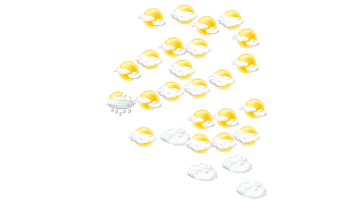 In Boende kann sich morgens die Sonne nicht durchsetzen und es bleibt bedeckt bei Temperaturen von 22°C. Gegen später ist es wolkig bei Höchsttemperaturen bis zu 29°C. Abends gibt es in Boende Regen bei Werten von 22°C. Nachts ist es bewölkt, die Sterne sind nur vereinzelt zu sehen bei Tiefsttemperaturen von 21°C.
