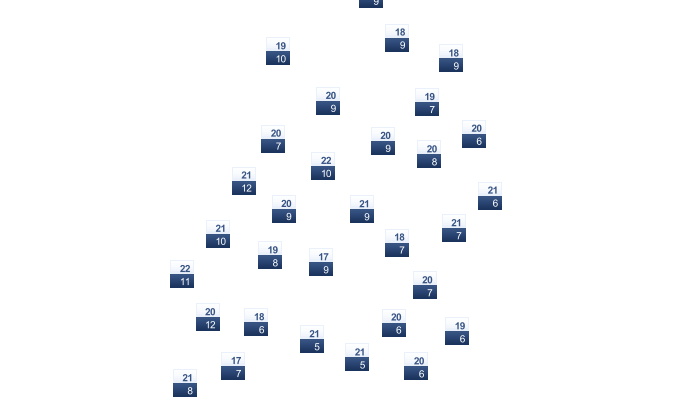 | 3 | 5 | 9 | 15 | 17 | 22 | 24 | 24 | 19 | 14 | 8 | 5 |