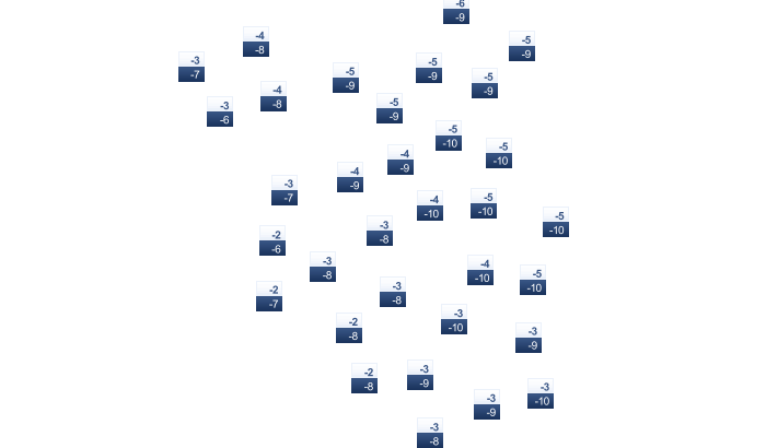 | 3 | 5 | 9 | 15 | 17 | 22 | 24 | 24 | 19 | 14 | 8 | 5 |