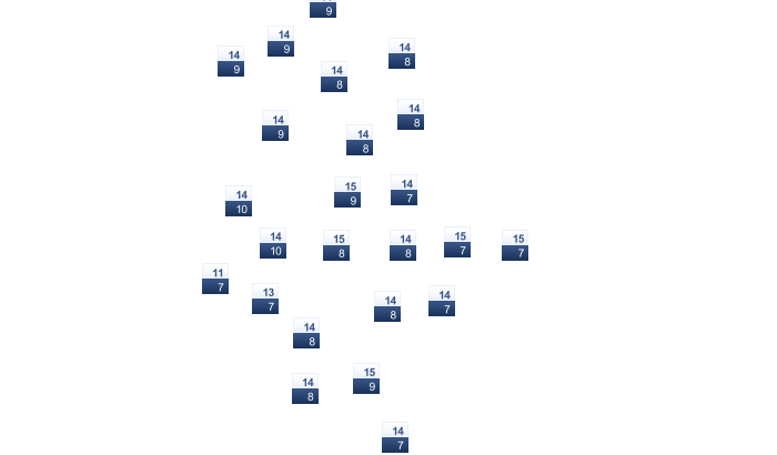 | 3 | 5 | 9 | 15 | 17 | 22 | 24 | 24 | 19 | 14 | 8 | 5 |