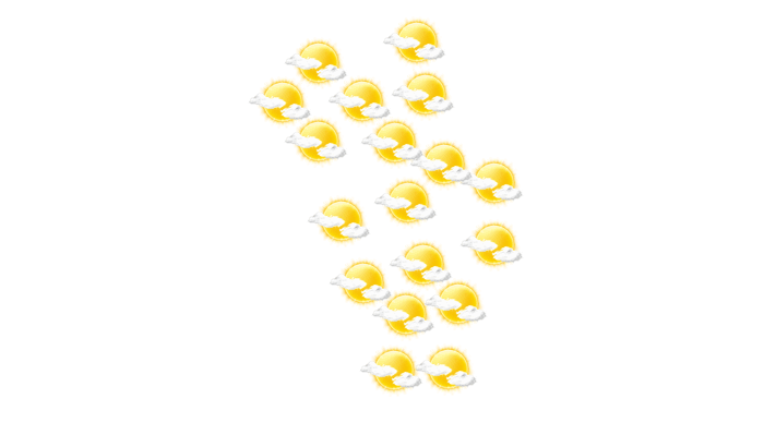 In Sibouli stören tagsüber nur einzelne Wolken den sonst blauen Himmel bei Werten von 27 bis zu 29°C. In der Nacht bedecken einzelne Wolken den Himmel bei Tiefstwerten von 27°C.