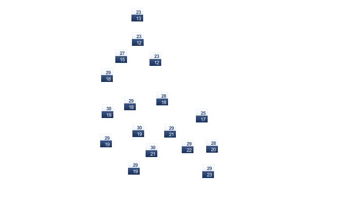| 28 | 28 | 28 | 29 | 30 | 30 | 31 | 31 | 31 | 31 | 29 | 28 |