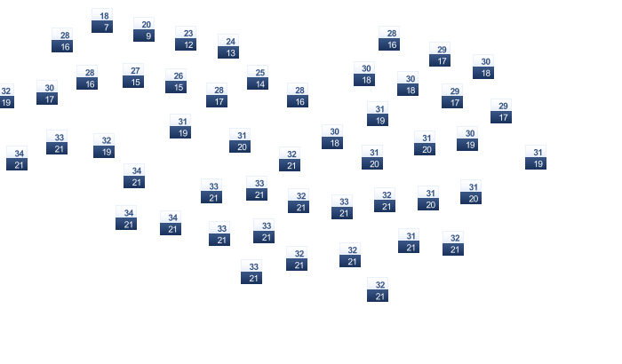 | 28 | 28 | 28 | 29 | 30 | 30 | 31 | 31 | 31 | 31 | 29 | 28 |