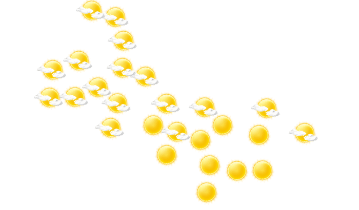 In Las Guáranas wird bis zum Nachmittag die Sonne von einzelnen Wolken verdeckt und die Temperaturen liegen zwischen 22 und 31°C. Am Abend ziehen in Las Guáranas Wolkenfelder durch bei Werten von 24 bis zu 26°C. Nachts ist es locker bewölkt bei Werten von 22°C.