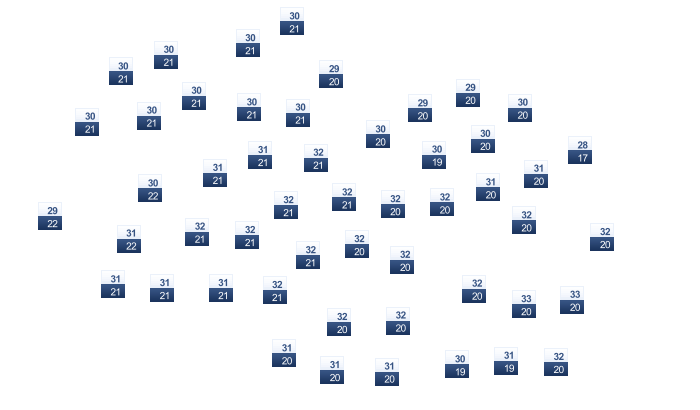 | 28 | 28 | 28 | 29 | 30 | 30 | 31 | 31 | 31 | 31 | 29 | 28 |
