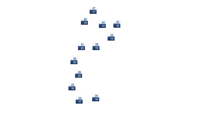 | 22 | 22 | 22 | 23 | 23 | 24 | 25 | 25 | 24 | 24 | 23 | 22 |
