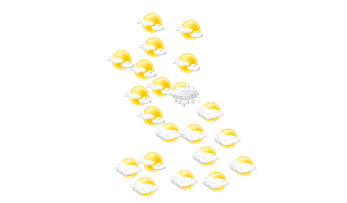 In Baní gibt es morgens einen wolkenlosen Himmel bei Temperaturen von 23°C. Im weiteren Tagesverlauf verdecken am Nachmittag und am Abend einzelne Wolken die Sonne bei Temperaturen von 24 bis 30°C. In der Nacht ist es wolkig bei Tiefsttemperaturen von 23°C.