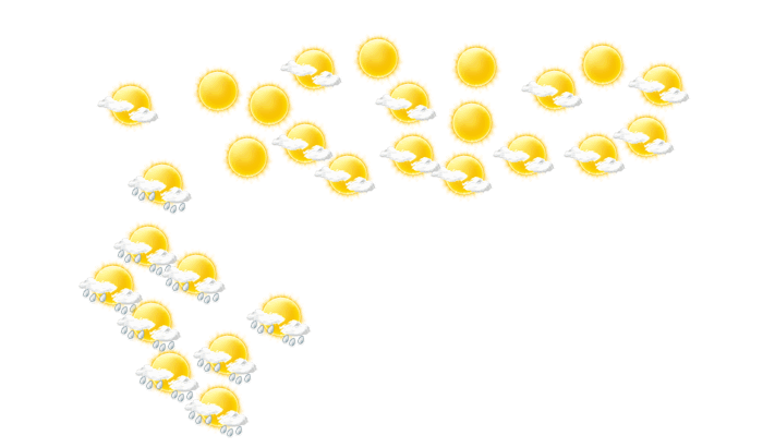 In Samaná strahlt morgens die Sonne bei Temperaturen von 23°C. Im weiteren Verlauf des Tages bilden sich vom Nachmittag bis abends vereinzelt Wolken bei Temperaturen von 24 bis 27°C. In der Nacht ist es wolkenlos bei Werten von 24°C.