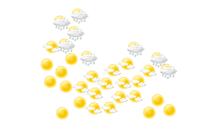 In Los Llanos gibt es vormittags und auch am Nachmittag überwiegend blauen Himmel mit vereinzelten Wolken bei Temperaturen von 23 bis 31°C. Am Abend sollte in Los Llanos der Schirm nicht vergessen werden, da es regnet bei Werten von 24 bis zu 25°C. Nachts gibt es nur selten Lücken in der Wolkendecke bei einer Temperatur von 24°C.