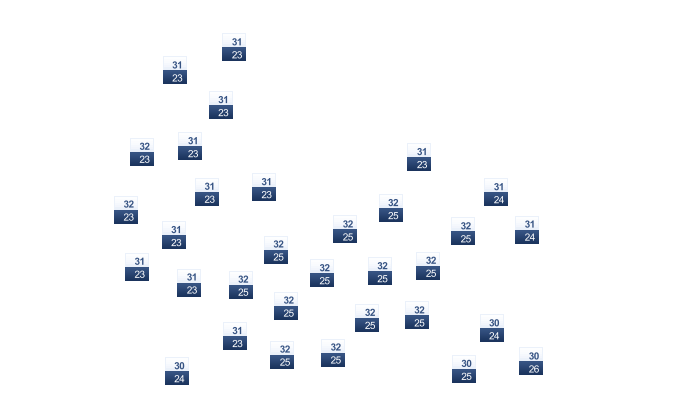 28 | 28 | 28 | 29 | 30 | 30 | 31 | 31 | 31 | 31 | 29 | 28 |