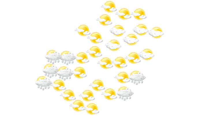 In Ensanche Bolívar kommt es am Morgen zu einem Mix aus Sonne und Wolken bei Temperaturen von 22°C. Im weiteren Verlauf des Tages gibt es mittags und auch abends Regen bei Werten von 24 bis zu 31°C. In der Nacht ist es überwiegend dicht bewölkt bei einer Temperatur von 22°C.