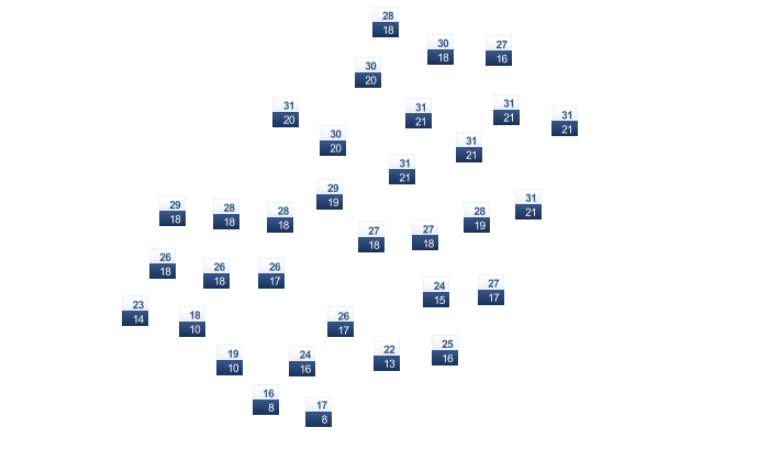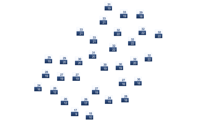 | 28 | 28 | 28 | 29 | 30 | 30 | 31 | 31 | 31 | 31 | 29 | 28 |