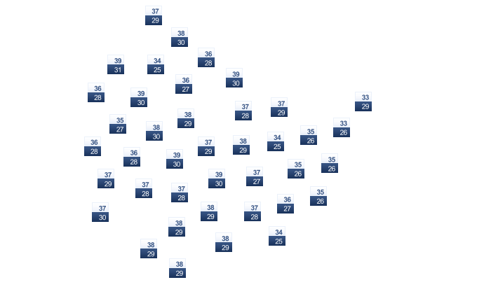 29 | 29 | 30 | 32 | 35 | 39 | 42 | 41 | 37 | 33 | 31 | 29 |