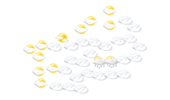 In Cube sind von morgens bis zum Nachmittag anhaltende Schauer zu erwarten bei Werten von 23 bis zu 29°C. Abends ist es in Cube bedeckt bei Temperaturen von 23 bis 24°C. Nachts ist der Himmel bedeckt bei Tiefsttemperaturen von 23°C.
