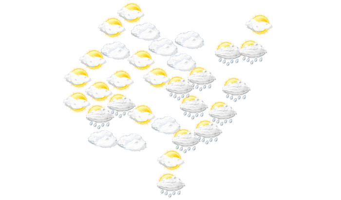 In Nulti zeigt sich von morgens bis zum Nachmittag die Sonne nur vereinzelt bei sonst wolkigem Himmel bei Werten von 4 bis zu 15°C. Abends gibt es in Nulti überwiegend blauen Himmel mit vereinzelten Wolken bei Temperaturen von 6 bis 8°C. Nachts ist es wolkig bei Tiefsttemperaturen von 6°C.