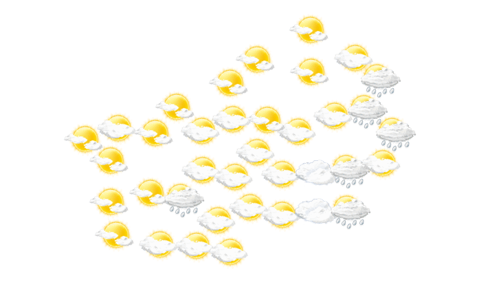 In Cube ist es morgens bewölkt, die Sonne zeigt sich nur vereinzelt bei Temperaturen von 22°C. Im weiteren Tagesverlauf fällt Regen und die Temperatur erreicht 32°C. Am Abend ist in Cube der Himmel bedeckt bei Werten von 23 bis zu 25°C. Nachts ist es bedeckt bei Tiefsttemperaturen von 22°C.