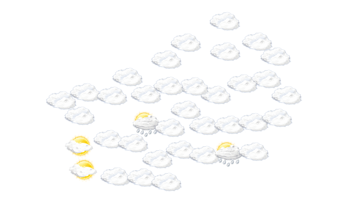 In Cube überwiegt vormittags und auch am Nachmittag dichte Bewölkung aber es bleibt trocken bei Werten von 22 bis zu 27°C. Am Abend sollte in Cube der Schirm nicht vergessen werden, da es regnet bei Werten von 22 bis zu 23°C. Nachts bleibt es bedeckt bei Tiefsttemperaturen von 22°C.