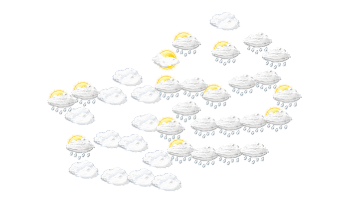 In Cube überwiegt den ganzen Tag dichte Bewölkung aber es bleibt trocken bei Werten von 22 bis zu 28°C. Nachts sind anhaltende Regen-Schauer zu erwarten bei Tiefstwerten von 22°C.