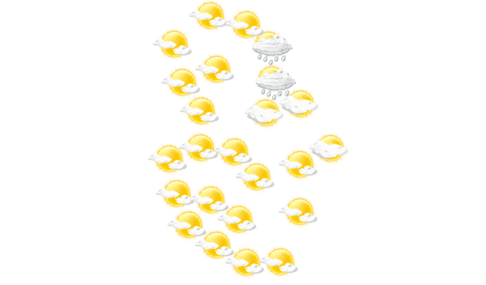 In San Francisco ist es morgens überwiegend dicht bewölkt bei Werten von 24°C. Im Laufe des Mittags überwiegt dichte Bewölkung aber es bleibt trocken und die Höchstwerte liegen bei 34°C. Am Abend regnet es in San Francisco bei Temperaturen von 24 bis 26°C. Nachts bilden sich leichte Wolken und die Temperatur sinkt auf 23°C.
