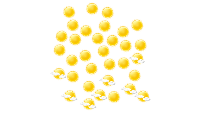 In Yamoussoukro gibt es tagsüber strahlenden Sonnenschein bei Temperaturen von 22 bis 39°C. Nachts ist es bewölkt, die Sterne sind nur vereinzelt zu sehen bei Tiefstwerten von 23°C.