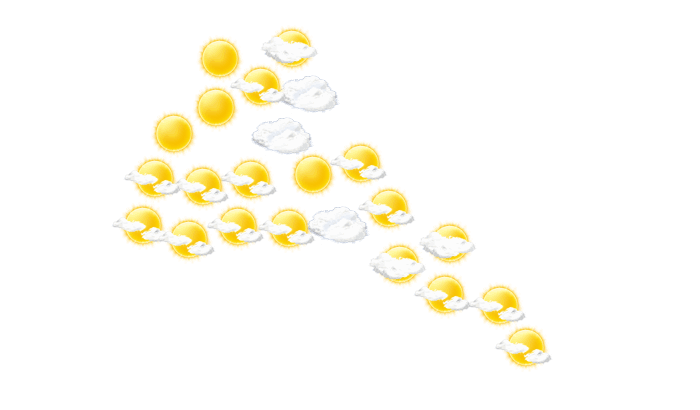 In Massawa wird von Tagesbeginn bis zum Nachmittag die Sonne von einzelnen Wolken verdeckt bei Werten von 24 bis zu 29°C. Abends ist es in Massawa wolkenlos bei Werten von 25 bis zu 26°C. In der Nacht gibt es keine Wolken und die Sterne sind klar zu erkennen und das Thermometer fällt auf 23°C.