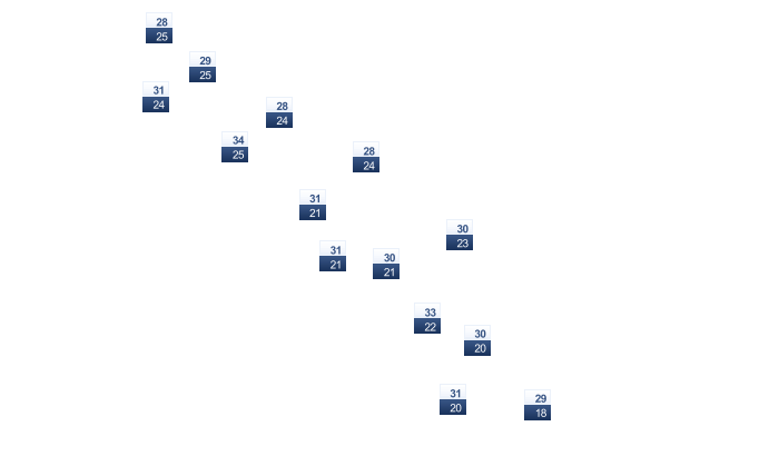 | 23 | 24 | 25 | 26 | 26 | 26 | 22 | 22 | 23 | 22 | 22 | 22 |