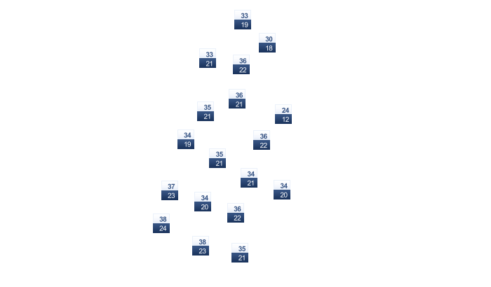 | 23 | 24 | 25 | 26 | 26 | 26 | 22 | 22 | 23 | 22 | 22 | 22 |