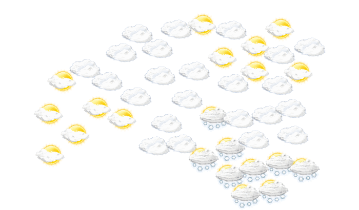 In Sindi ist es am Morgen bewölkt, die Sonne zeigt sich nur vereinzelt bei Temperaturen von -5°C. Des Weiteren gibt es am Nachmittag und am Abend Schnee und die Temperaturen liegen zwischen -4 und -1 Grad. Nachts ziehen Wolkenfelder durch und die Luft kühlt sich auf -9°C ab. Böen können Geschwindigkeiten zwischen 22 und 27 km/h erreichen.