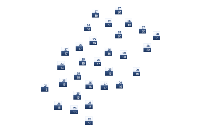 In Ntfonjeni ist es von morgens bis zum Nachmittag bedeckt und die Temperaturen liegen zwischen 19 und 27°C. Am Abend ist es regnerisch bei Werten von 19 bis zu 20°C. In der Nacht überwiegt dichte Bewölkung, aber es bleibt trocken bei einer Temperatur von 19°C.
