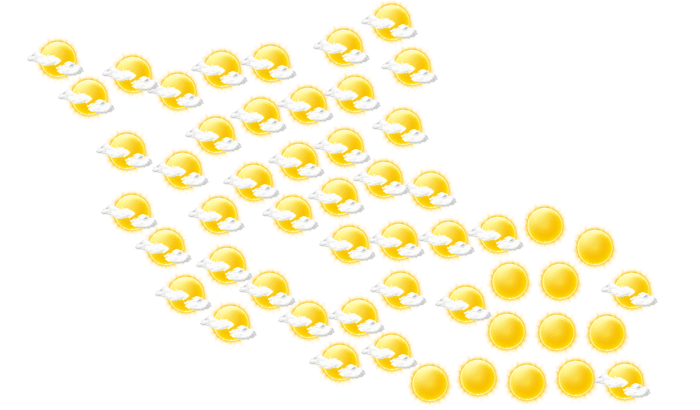 In Hluti gibt es am Tag eine Mischung aus Sonne und Wolken bei Temperaturen von 16 bis 27°C. In der Nacht ist es wolkenlos und die Luft kühlt sich auf 15°C ab.