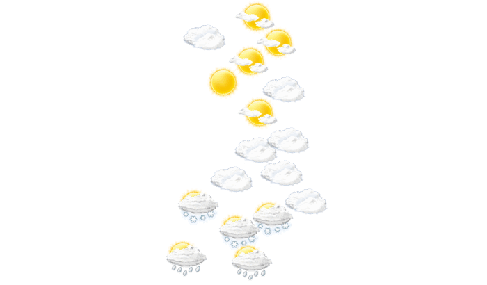 In Kangasala schneit es morgens bei Werten von 0°C. Darüber hinaus sollte vom Nachmittag bis abends der Schirm nicht vergessen werden, da es regnet bei Werten von 0 bis zu 1°C. Nachts schneit es bei Werten von 0°C. Mit Böen zwischen 13 und 24 km/h ist zu rechnen.