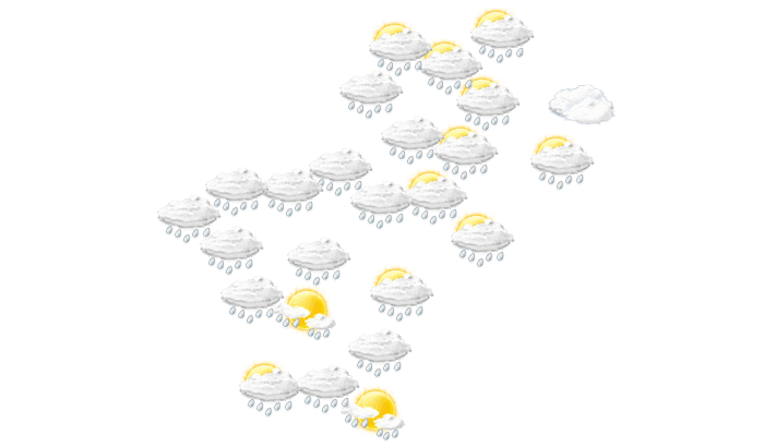 In Angers ist es morgens bedeckt und die Temperatur liegt bei 13°C. Im weiteren Verlauf des Tages bleibt der Himmel mittags und auch abends grau und es regnet bei Werten von 16 bis zu 17°C. In der Nacht wechseln sich Regen und trockene Phasen ab und die Temperatur sinkt auf 12°C. Aus südwestlicher Richtung weht der Wind und erreicht dabei Geschwindigkeiten von 4 bis 25 km/h. Böen können Geschwindigkeiten zwischen 18 und 71 km/h erreichen.