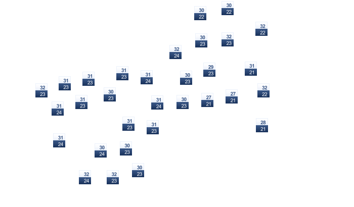 | 30 | 31 | 32 | 32 | 30 | 28 | 27 | 28 | 29 | 30 | 30 | 30 |