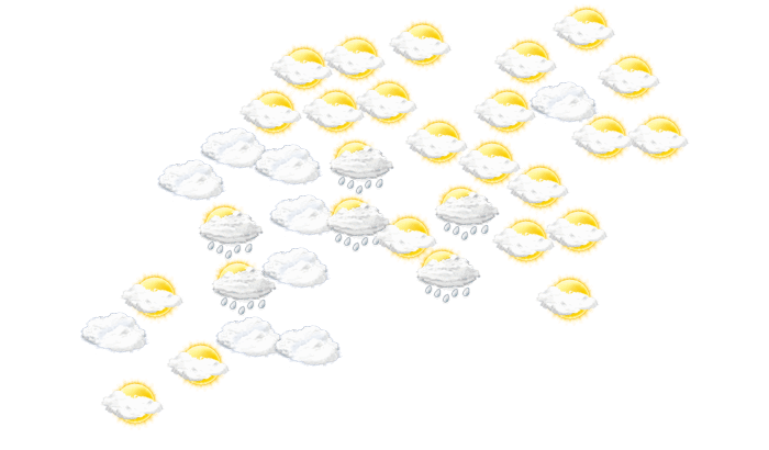 In Makokou zeigt sich morgens die Sonne zwischen einzelnen Wolken bei Werten von 20°C. Mittags fällt Regen und die Temperaturen erreichen 27°C. Am Abend gibt es in Makokou nur selten Lücken in der Wolkendecke bei Werten von 21 bis zu 22°C. Nachts ist es bewölkt, die Sterne sind nur vereinzelt zu sehen bei einer Temperatur von 20°C.