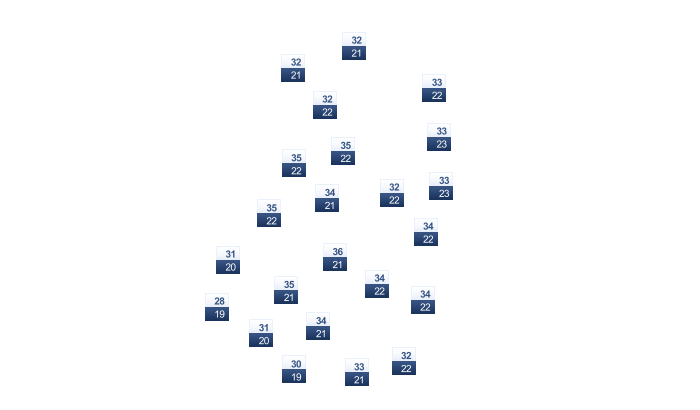 | 30 | 31 | 32 | 32 | 30 | 28 | 27 | 28 | 29 | 30 | 30 | 30 |