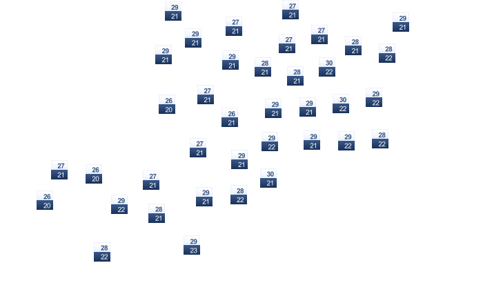 | 30 | 31 | 32 | 32 | 30 | 28 | 27 | 28 | 29 | 30 | 30 | 30 |
