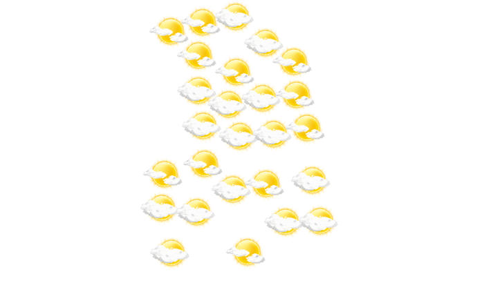 In Tamale kann sich am Morgen die Sonne nicht durchsetzen und es ist wolkig bei Werten von 27°C. Im weiteren Tagesverlauf gibt es vom Nachmittag bis abends eine Mischung aus Sonne und Wolken bei Temperaturen von 34 bis 37°C. Nachts ziehen Wolkenfelder durch bei einer Temperatur von 27°C.